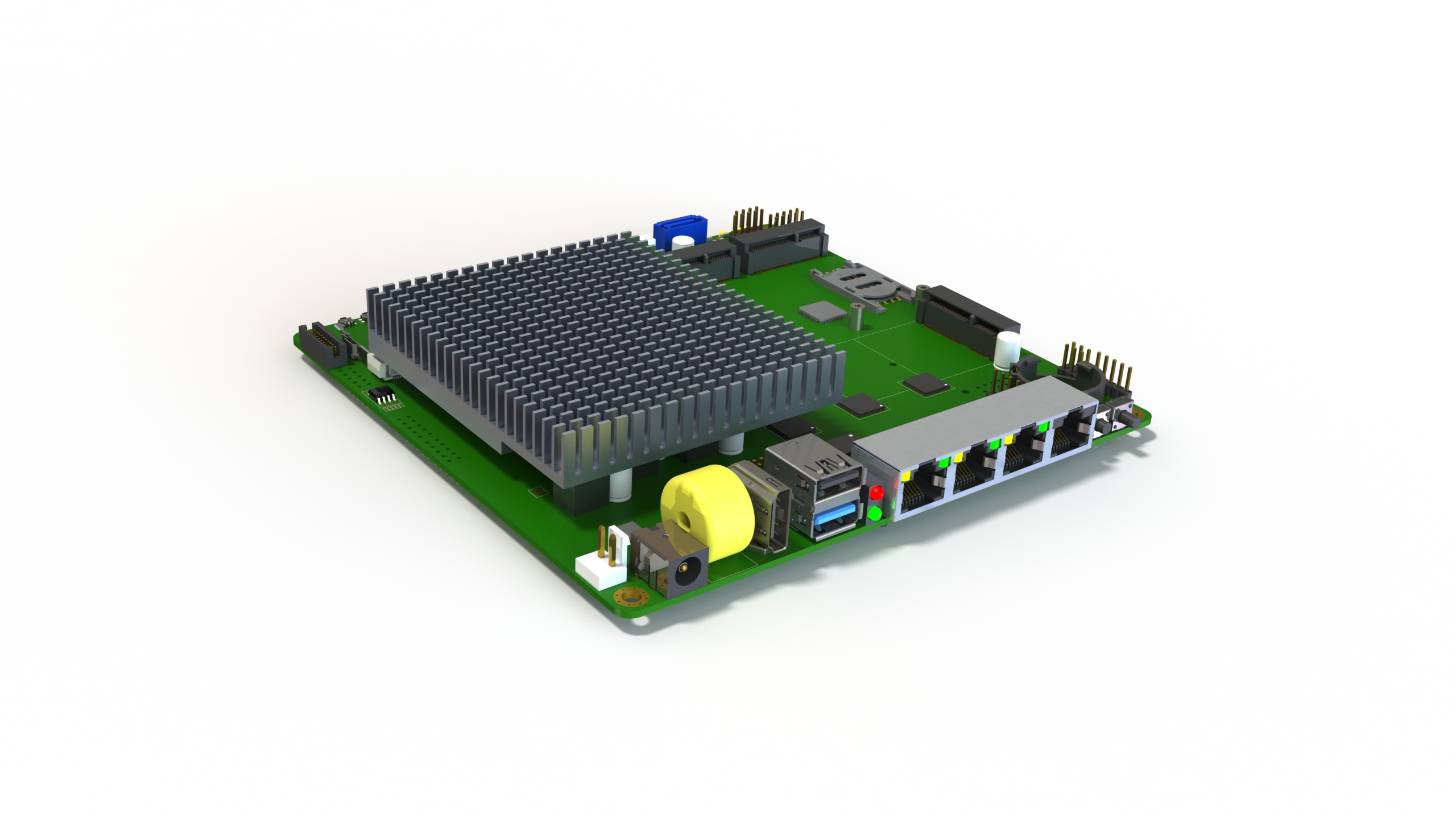 Storage: Boot from m-SATA SSD, eMMC card (internal eMMC controller), or external USB. 1 SATA + power connector