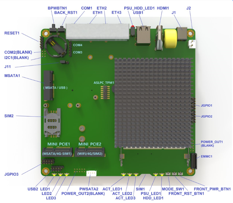 - 3 x mPCIe Slot ( 1 mSATA/4GLte,1 Wifi/4GLte,1 mSATA/USB )