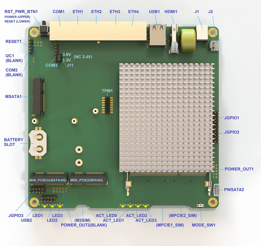 - 3 x mPCIe Slot ( 1 mSATA/4GLte,1 Wifi/4GLte,1 mSATA )